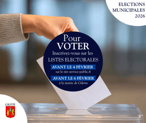 Bienvenue sur le site de la Mairie de Gilette Dernières Actualités ELECTIONS MUNICIPALES Les élections municipales se dérouleront le 15 et 22 mars...Lire l'article 30 janvier 2026 Notre Page Facebook Retrouvez nous sur les réseaux! J'y vais! Une question sur : la propreté, l’éclairage,les déchets, la voirie, l’assainissement, …