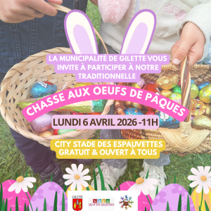 CHASSE AUX ŒUFS DE PÂQUES- 6 AVRIL La Municipalité de Gilette vous donne rendez-vous pour sa traditionnelle...Lire l'article 25 mars, 2026