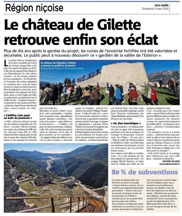 Le château de Gilette est un château français du XIIIème siècle édifié par une branche de la famille de Vintimille à Gilette. Le château est inscrit au titre des monuments historiques par arrêté du 28 juin 1931.