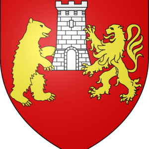 « De gueules à la tour d’argent supportée, à dextre par un ours, et à senestre par un lion, le tout d’or »