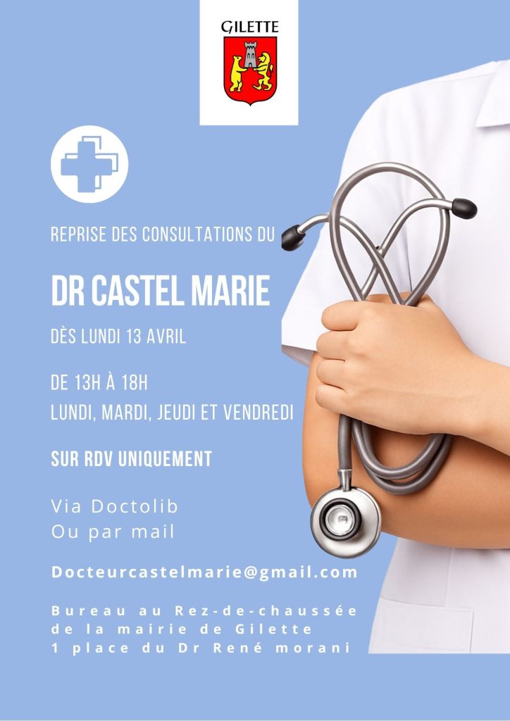 La municipalité vous informe que le Dr Castel reprend ses consultations le lundi 13 avril